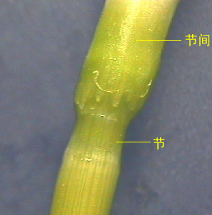 茎杆由节和节间组成,具有支持、输导、光合和贮藏作用。按位置和形态可分为地上、地下两部分,地下节不伸长构成蘖节,地上节间伸长,数目较稳定,一般为4-6个,多为5个。