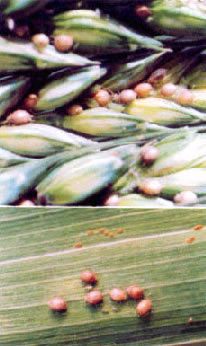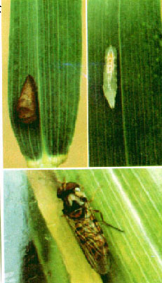 食蚜蝇的卵(左上)、幼虫(右上)及成虫