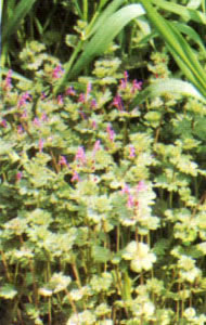 玄参科一年或二年生杂草,高10-40厘米,叶对生,下部叶较小,有柄,上部叶无柄,圆形或肾形,两面被伏毛;边缘有锯齿,轮伞花序。花萼筒状钟形,花冠粉红色或紫红,唇形;小坚果倒卵状三棱形。