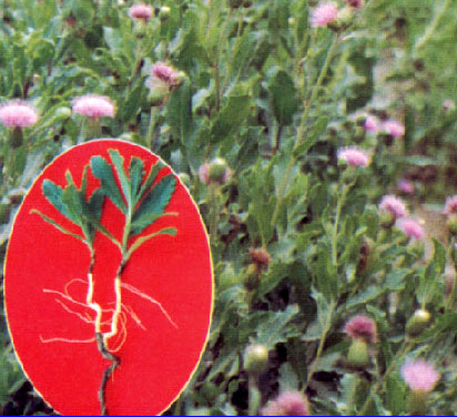 又名刺儿菜、刺刺芽、刺蒡花。菊科多年生草本,根状茎长,茎直立,叶椭圆形或长椭圆状披针形。头状花序单生于茎顶,花冠紫红色,为管状花。瘦果椭圆形或长卵形,略扁平,冠毛羽毛状。